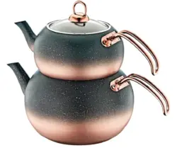 Login to view pricesOMS 8210 Granite Double Tea Pots Set. Color=Copper & Black 1.6 Liter top kettle / pot. 3.0 Liter bottom kettle / pot.